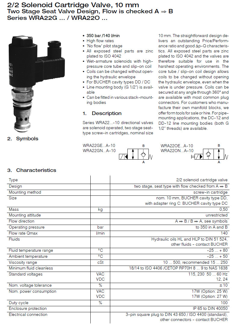 詳細(xì)信息 WRA22GEDA-10-1,WRA22OEDA-10-1,WRA22GNCA-10-1,WRA22ONCA-10-1,Bucher方向閥