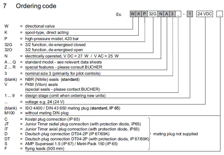 詳細(xì)信息 WKP32GNA3-1,WKP32ONA3-1,WKP32GNA3V-1,WKP32ONA3V-1,Bucher方向閥