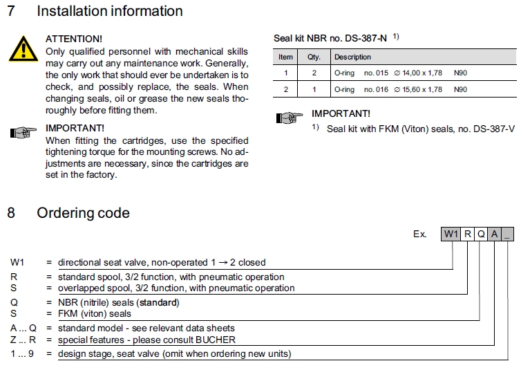 詳細(xì)信息 W1RQA1,W1RSA1,W1SQA1,W1SSA1,Bucher方向閥