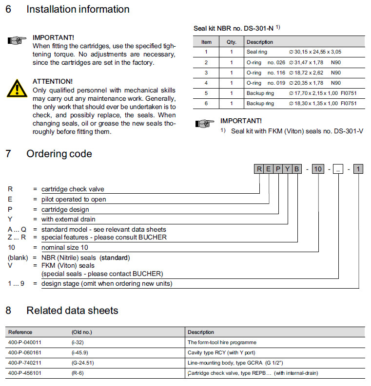 詳細信息 REPYB-10-1,REPYB-10-V-1,Bucher插裝閥
