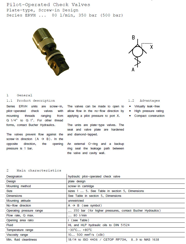 詳細(xì)信息 ERVH-G-1,ERVH-G-2,ERVH-G-3,ERVH-M-3,ERVH-M-4,ERVH-U-4,ERVH-U-5,Bucher先導(dǎo)式單向閥