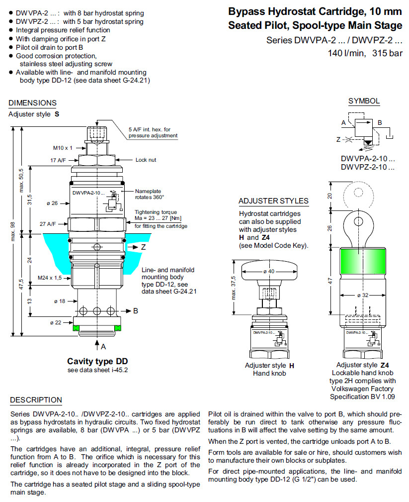DWVPA-2-10-SN-3,DWVPA-2-10-HN-3,DWVPA-2-10-SM-3,DWVPA-2-10-HM-3,Bucher壓力控制閥