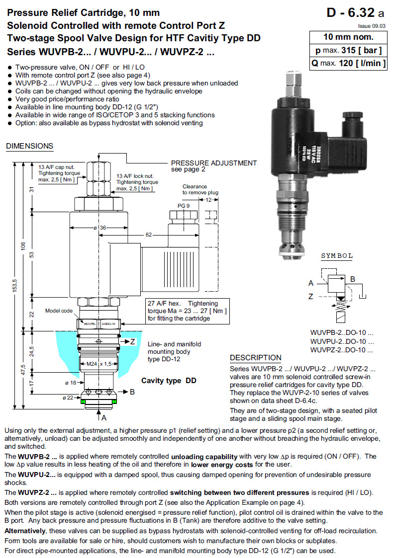 詳細信息 WUVPB-2MDO-10-1,WUVPB-2LDO-10-1,WUVPB-2NDO-10-1,Bucher電磁控制壓力安全閥
