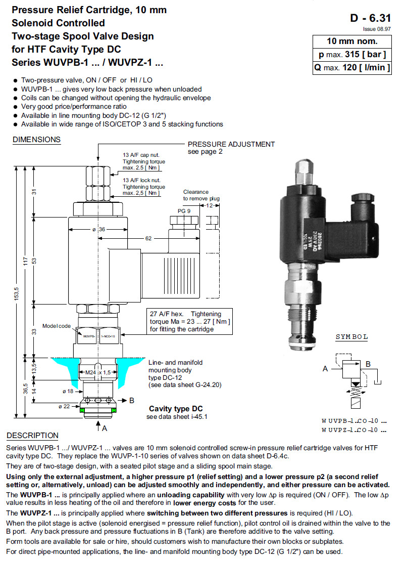 詳細(xì)信息 WUVPB-1MCO-10-1,WUVPB-1LCO-10-1,WUVPB-1NCO-10-1,Bucher電磁控制壓力安全閥