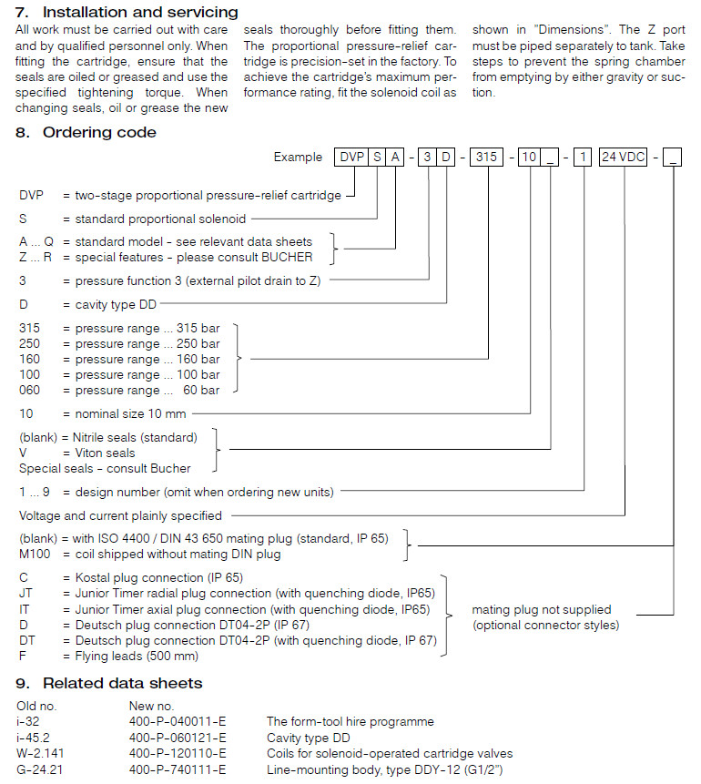 詳細信息 DVPSA-3D-250-10-2,DVPSA-3D-160-10-2,DVPSA-3D-060-10-2,DVPSA-3D-315-10-2,Bucher比例溢流閥