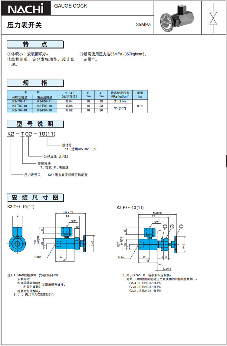 K2-T02-11,K2-T03-10,K2-T04-10,K2-F02-11,K2-F03-10,K2-F04-10,NACHI壓力表開關(guān)
