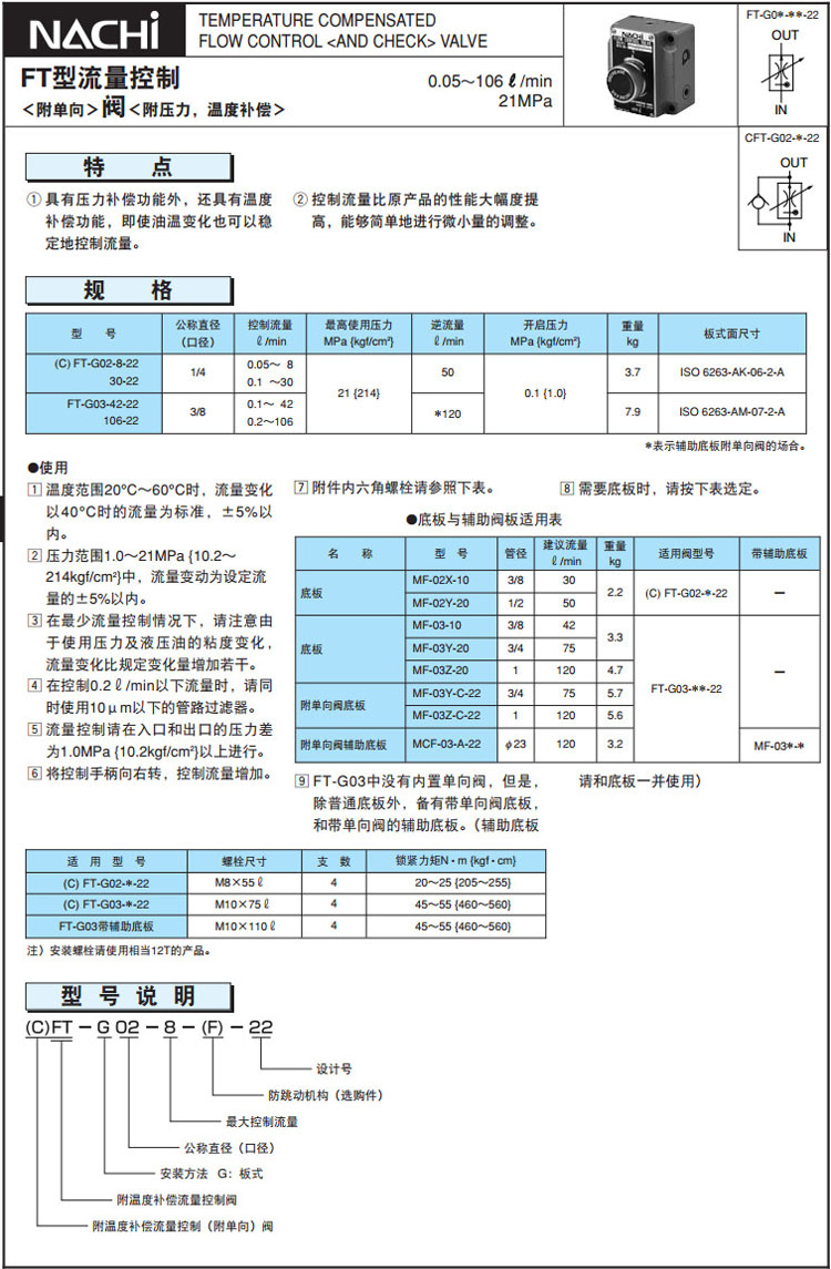CFT-G02-8-22,CFT-G02-30-22,NACHI流量控制附單向閥