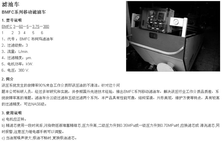 產(chǎn)品: 瀏覽次數(shù):1041BMFC3-60-5-3.75-380,濾油車