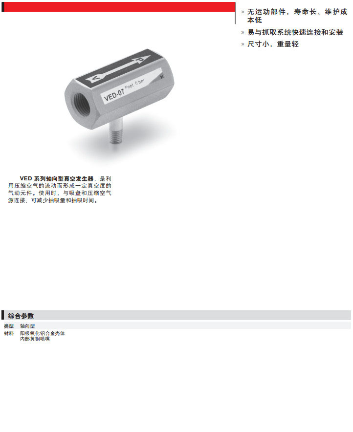 詳細信息 VED-07,VED-09,camozzi軸向型真空發(fā)生器