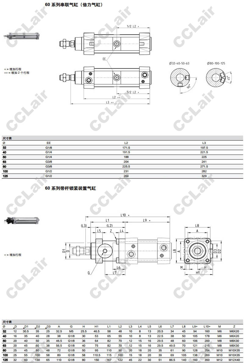 60M1L032A0100,60M2L050A0200,60M3L063A0250,60M4L080A0300,60M5L0125A0400,60N6L0100A0320,camozzi氣缸