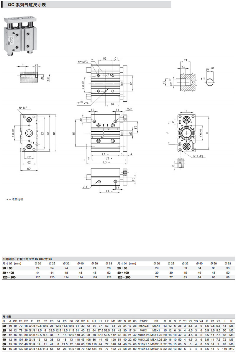 QCT2A020A020,QCT2A040A50,QCB2A020A040,QCB2A040A125,QCB2A063A075,camozzi氣缸