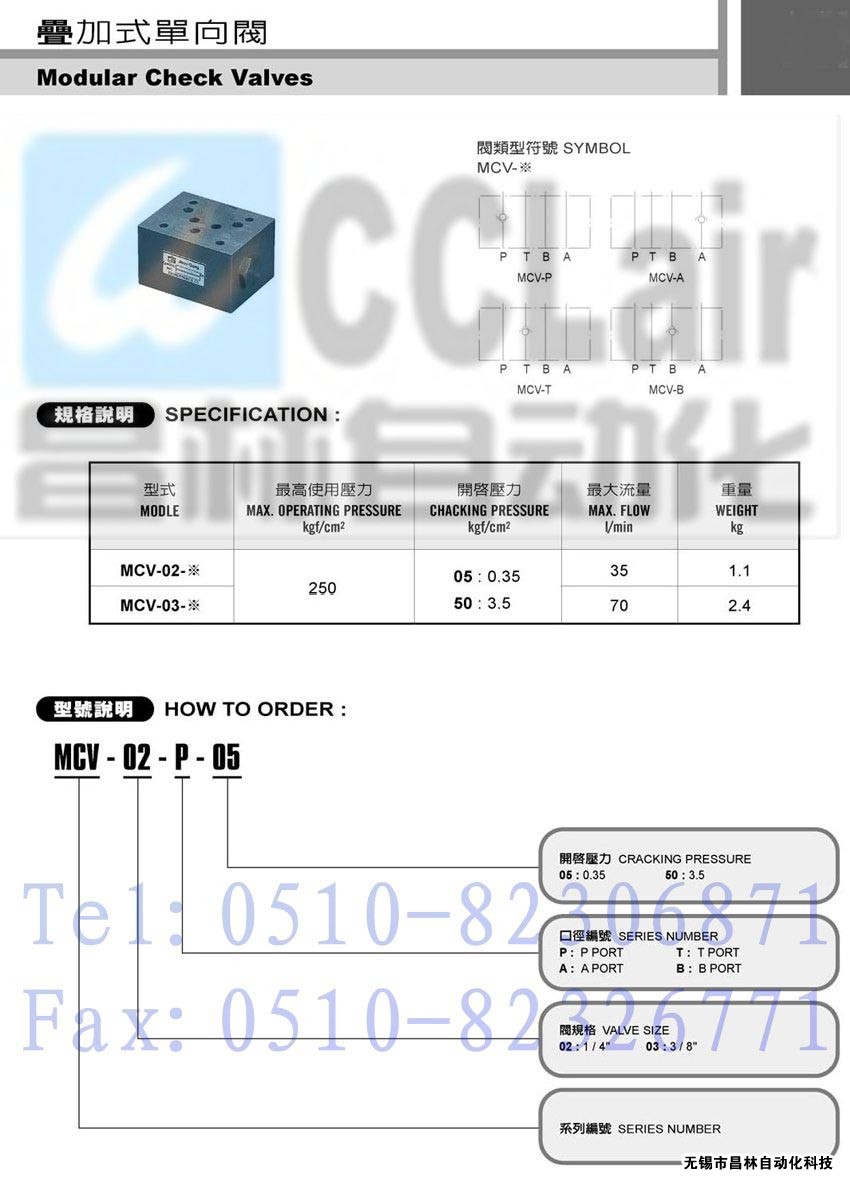 | MCV-03-T-05, | 疊加式單向閥 | |