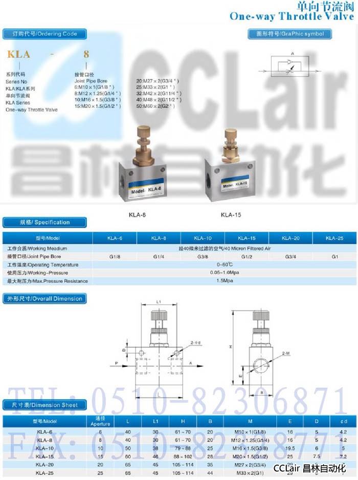 詳細信息 KLA-6,KLA-8,KLA-10,KLA-15,KLA-20,KLA-25,單向節(jié)流閥
