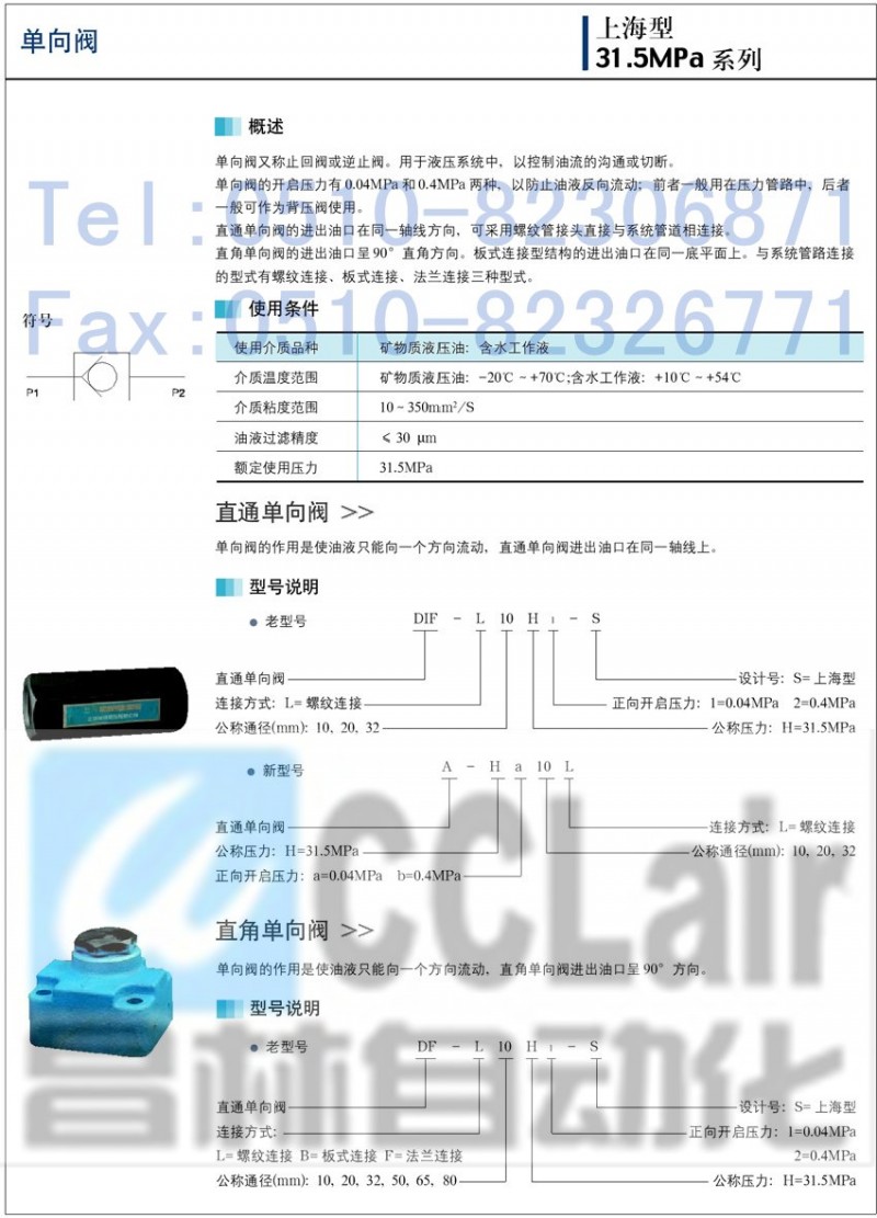 詳細(xì)信息 DF-B10H,DF-B10K,DF-B10C,DF-B20H,DF-B20K,DF-B20C,DF-B32H,DF-B32K,DF-B32C,直通單向閥