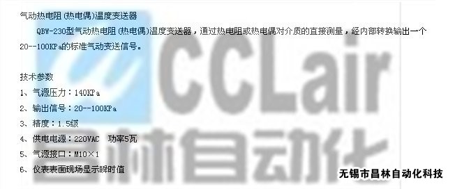詳細信息 QBW-230,氣動熱電阻(熱電偶)溫度變送器 生產(chǎn)廠家,價格