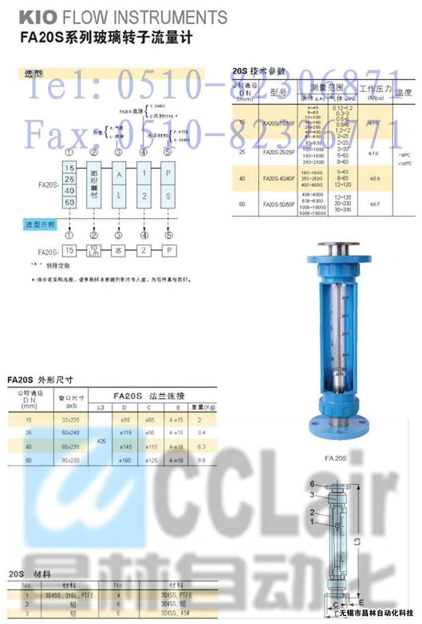 FA20S-40/40F,FA20S-50/50F玻璃轉(zhuǎn)子流量計