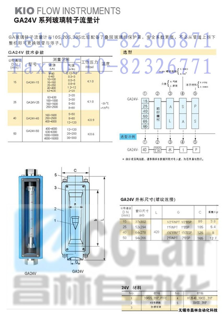 GA24V-40,GA24V-50玻璃轉(zhuǎn)子流量計