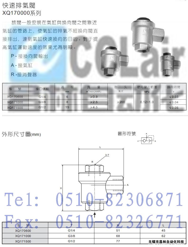 XQ170600,XQ171000,XQ171500,快速排氣閥