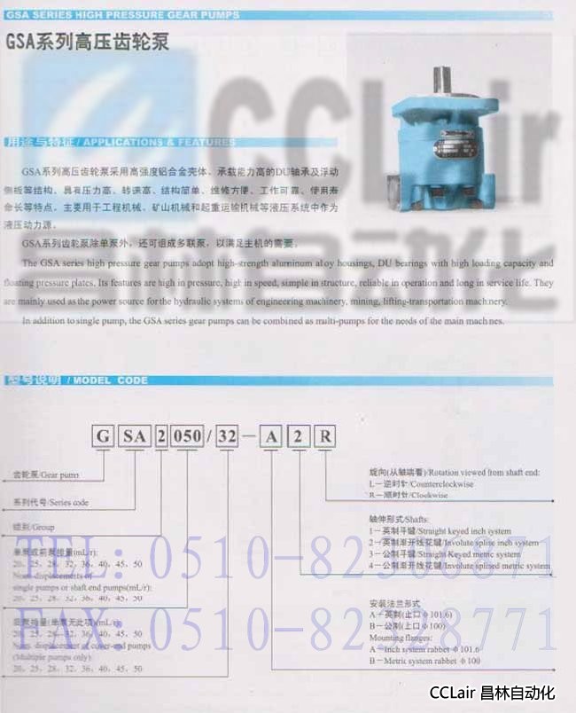 GSA3040, GSA3050, GSA3056, GSA3063, GSA3071,高壓齒輪泵