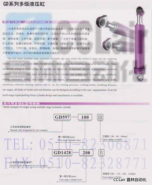 GD597-100Ⅲ,GD1428-200Ⅳ,多級(jí)液壓缸
