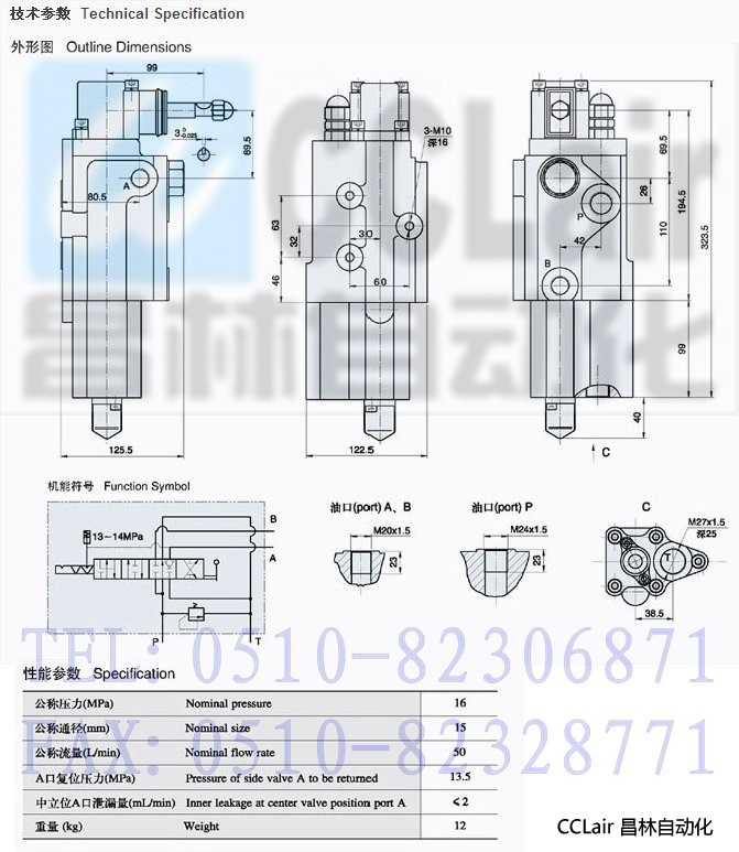 FP*-L15E系列分配器屬于整體式單路換向閥。該閥的主要功能是在中立位時(shí)A口帶有鎖裝置,保證其泄漏很??;在A口工作位時(shí),
