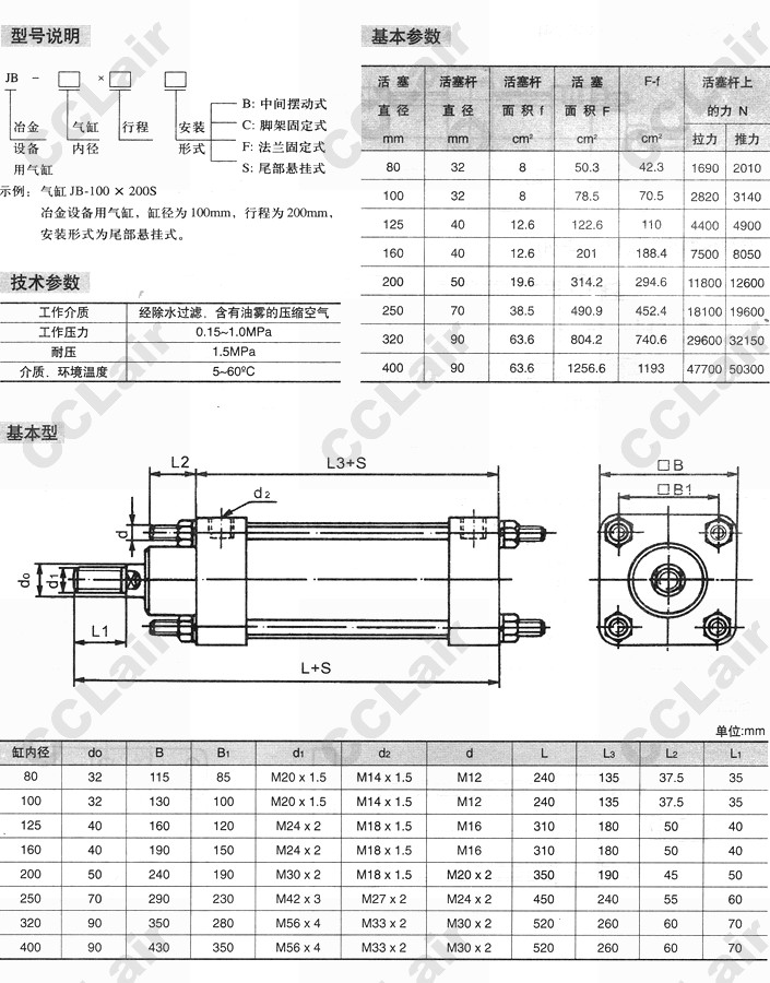 詳細(xì)信息 JB-80,JB-100,JB-125,JB-160,JB-200,JB-250,JB-320,JB-400,JB-200×100S,JB-80×100S,氣缸