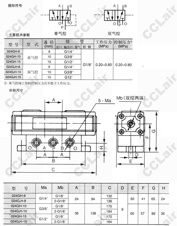 詳細信息 024GH-8,024GH-10,024GH-15,024G2H-8,024G2H-10,024G2H-15,二位四通氣控換向閥
