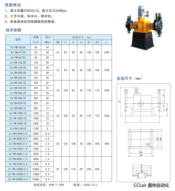 詳細信息 2J-TM-5500/1.0,2J-TM-4500/1.0,2J-TM-6700/0.8,液壓隔膜計量泵