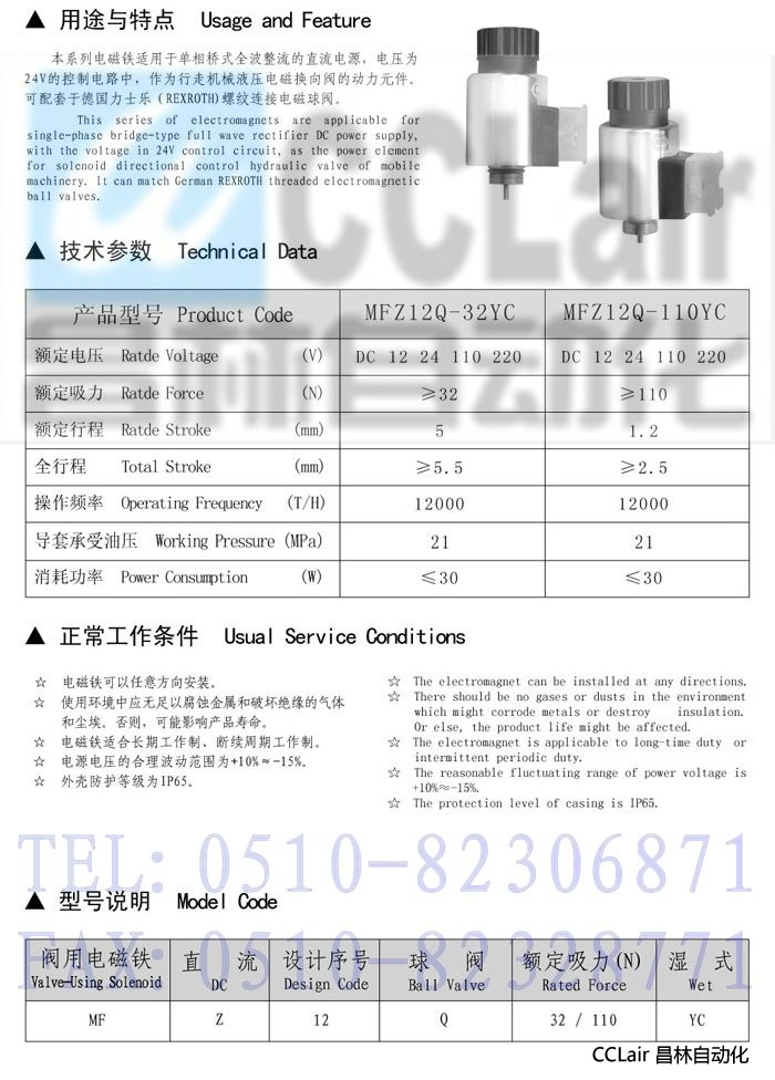 詳細信息 MFZ12Q-32YC,MFZ12Q-110YC,直流濕式閥用電磁鐵