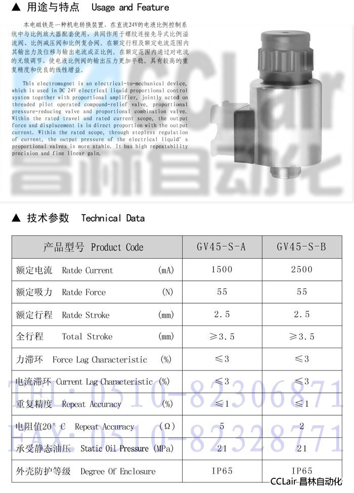 » GV45-S-A,GV45-S-B,比例閥用電磁鐵
