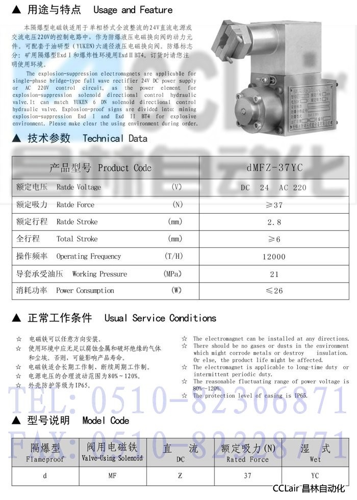 » dMFZ-37YC,隔爆型直流濕式閥用電磁鐵