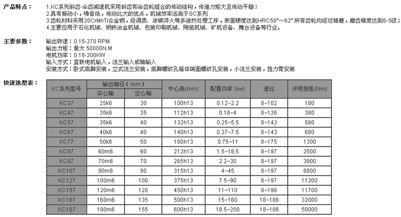 KC37,KC47,KC57,KC67,KC77,KC87,KC97,KC107,KCW37,KCM37,KCL37,KCLX37,KCN37,斜齒-傘齒減速機(jī)