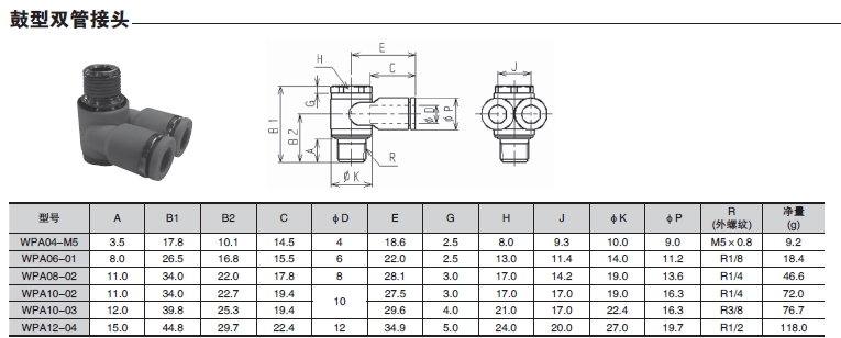 詳細信息 WPA04-M5,WPA06-01,WPA08-02,WPA10-02,WPA10-03,WPA12-04,鼓型雙管接頭