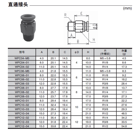詳細信息 WPC04-M5,WPC04-01,WPC04-02,WPC06-M5,WPC06-01,WPC06-02,WPC06-03,WPC08-01,直通接頭