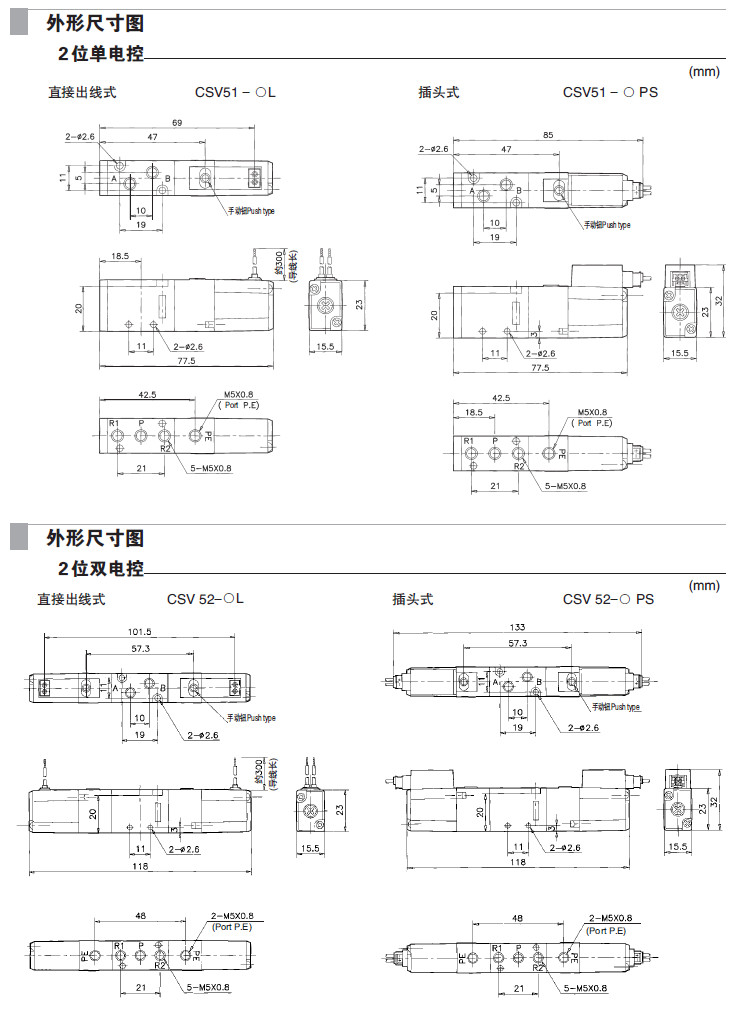 詳細(xì)信息 CSV51-1L,CSV52-2L,CSV53-4L,CSV54-1PS,CSV55-2PS,CSV51-4PS,5通先導(dǎo)式電磁閥