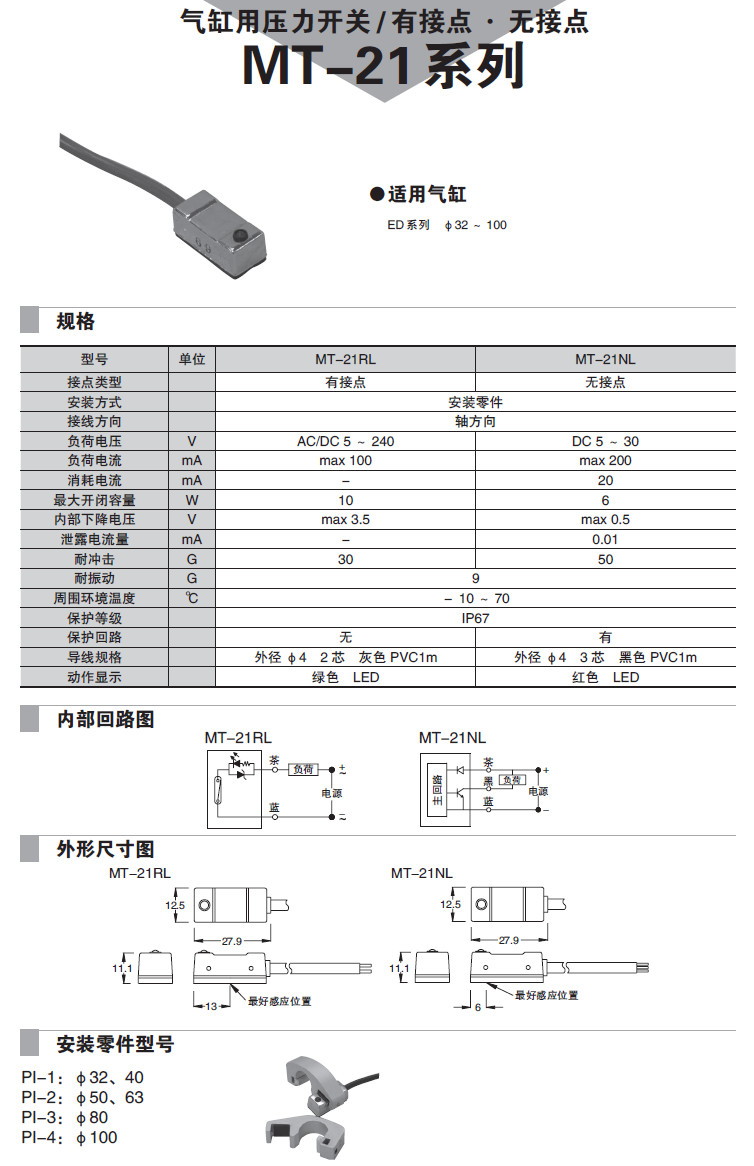 詳細信息 MT-21RL,MT-21NL,氣缸用壓力開關(guān)
