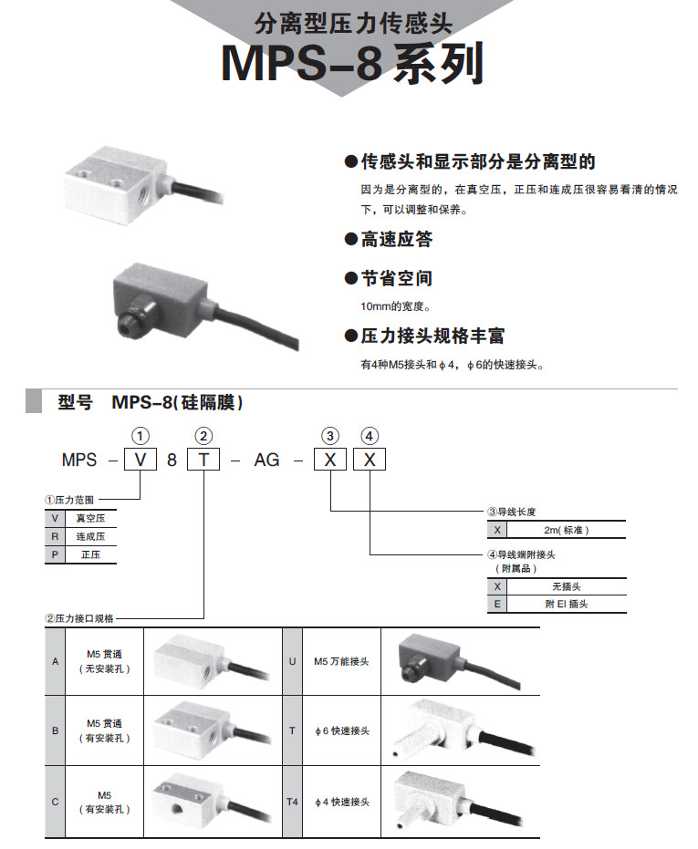 MPS-V8T-AG-XX,MPS-V8A-AG-XE,MPS-R8B-AG-XX,MPS-P8C-AG-XX,分離型壓力傳感頭