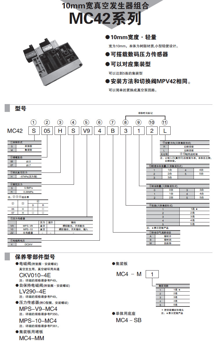 MC42-S-05-H-S-V9-S-4,MC42-S-07,MC42-M-05,MC42-M-07,真空發(fā)生器組合