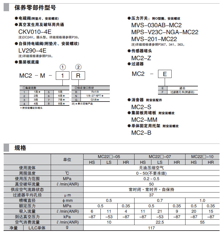 MC22-S-05,MC22-S-07,MC22-S-10,MC22-M-05,MC22-M-07,MC22-M-10,真空發(fā)生器組合