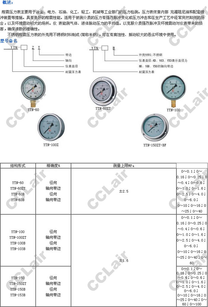詳細(xì)信息 YTN-60,YTN-60ZT,YTN-60B,YTN-63B,YTN-100,YTN-100ZT,YTN-100B,YTN-150,耐震壓力表