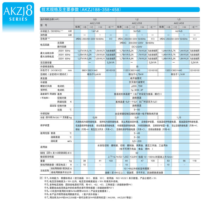 AKZJ188,AKZJ358,AKZJ458,AKZJ188-B,AKZJ358-B,AKZJ458-B,AKZJ188-C,DAIKIN變頻油冷卻機