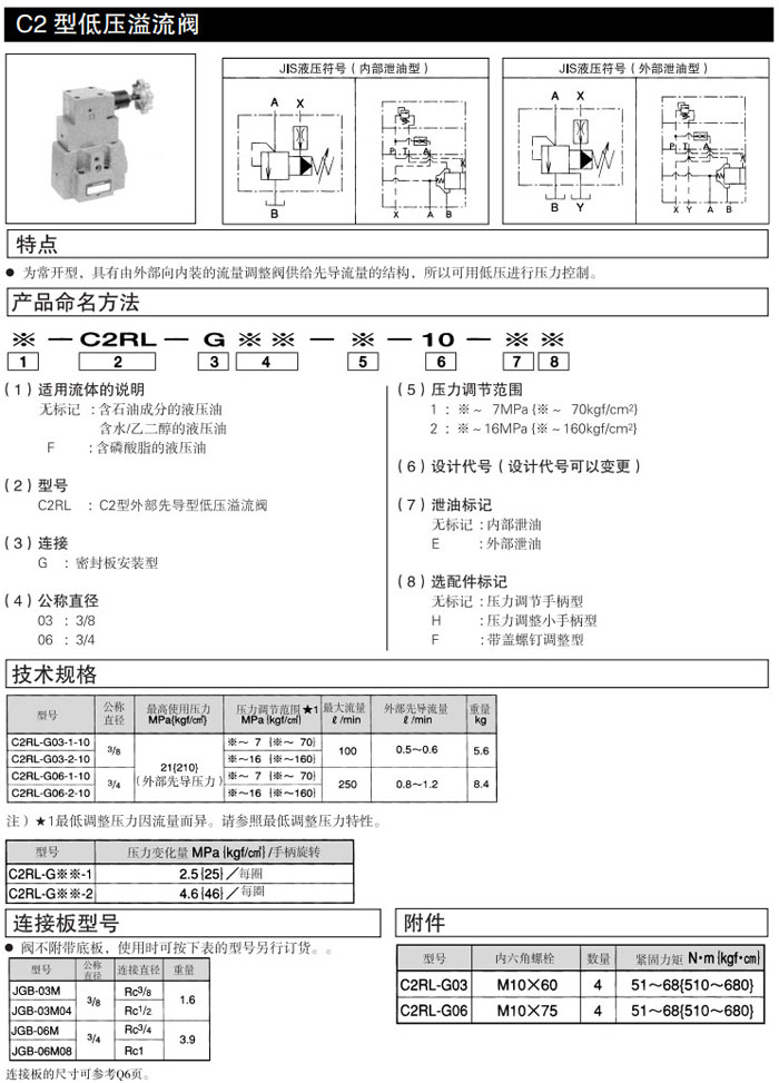C2RL-G03-1-10,C2RL-G03-2-10,C2RL-G06-1-10,C2RL-G06-2-10,DAIKIN低壓溢流閥