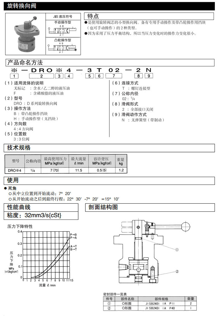詳細信息 DROB4-3T02-2N,DROH4-3T02-2N,DAIKIN旋轉換向閥