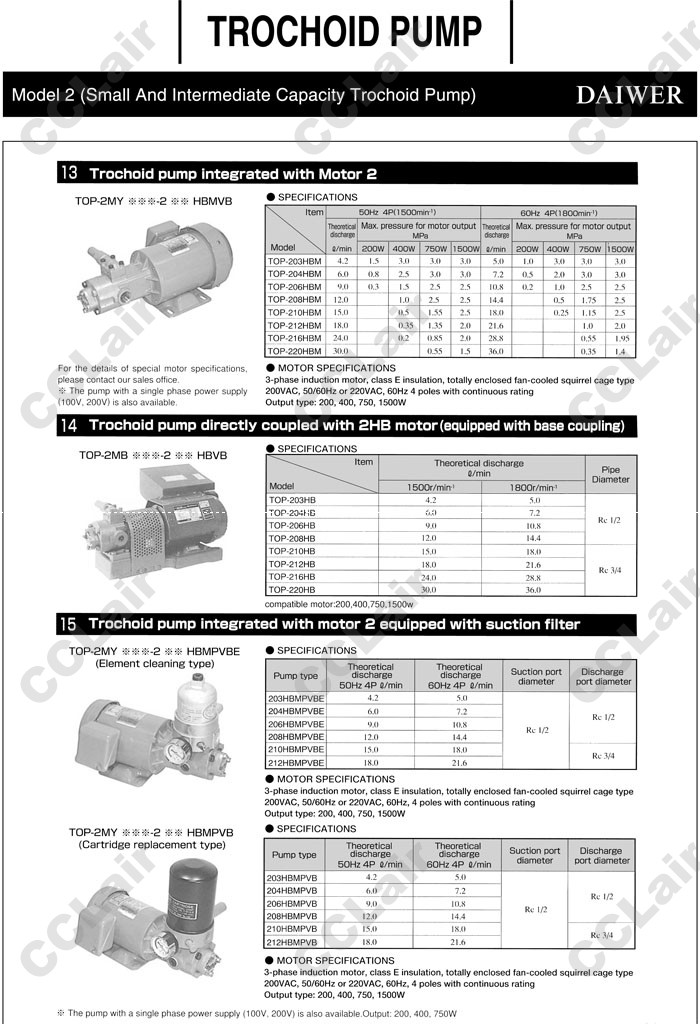 TOP-203HB,TOP-204HB,TOP-206HB,TOP-208HB,TOP-210HB,TOP-212HB,TOP-216HB,TOP-220HB,DAIWER次擺線泵