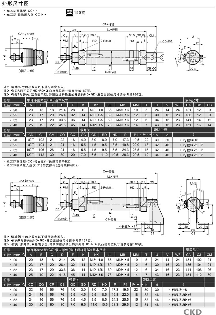 CMK2-00,CMK2-LB,CMK2-LS,CMK2-FA,CMK2-FB,CMK2-CA,CMK2-CC,CMK2-CB,CMK2-TA,CMK2-TB,CMK2-CC1,CKD緊固型氣缸