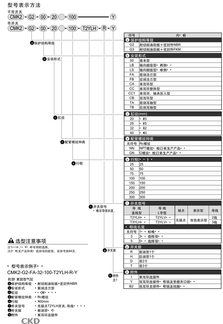 CMK2-G2-00-20-25,CMK2-G2-00-20-50,CMK2-G2-00-20-75,CMK2-G2-00-20-100,CMK2-G2-00-20-150,CKD緊固型氣缸