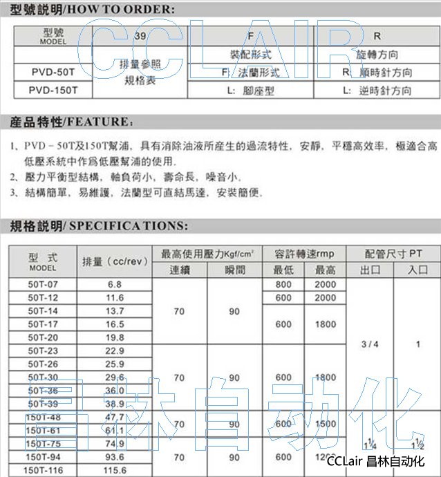 PVD-50T-07,PVD-50T-12,PVD-50T-14,PVD-50T-17,PVD-150T-61,PVD-150T-75,定量輪葉泵浦