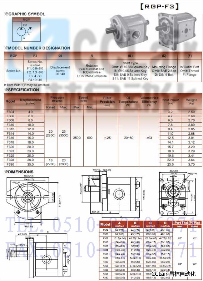 詳細信息 RGP-F304,RGP-F306,RGP-F310,RGP-F312,RGP-F314,齒輪泵浦