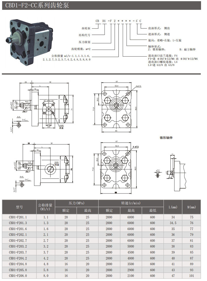 CBD1-F203.2,CBD1-F203.7,CBD1-F204.2,CBD1-F204.8,CBD1-F205.8,CBD1-F208.0,CBD1-F208.0L4Z-CC,齒輪泵