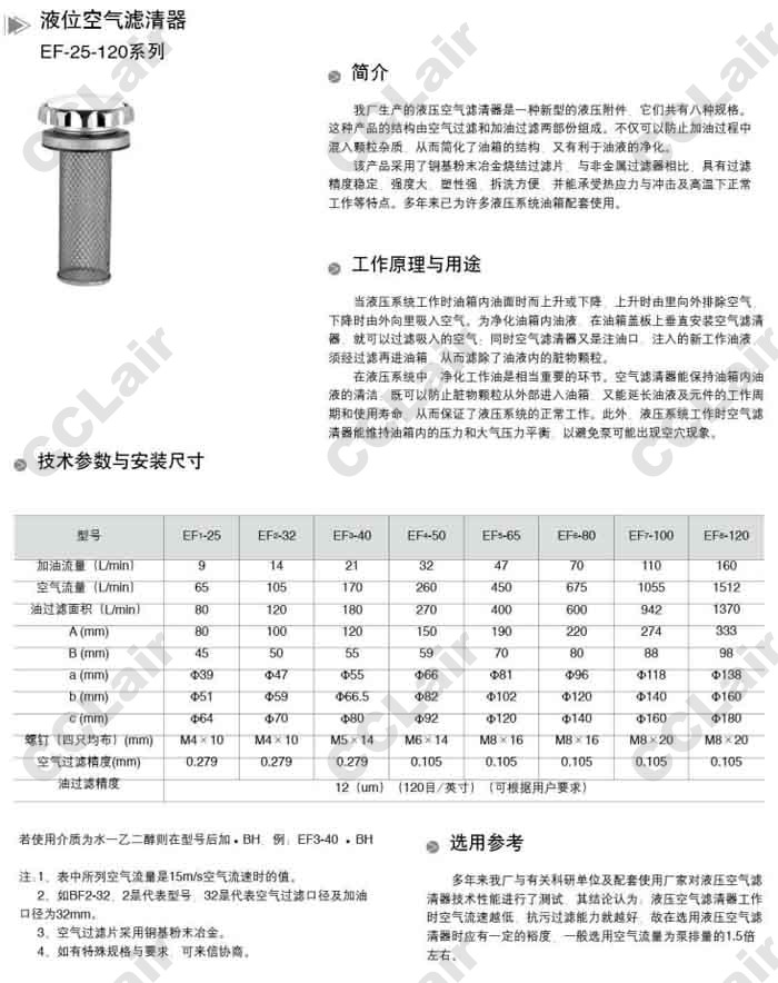 EF1-25,EF2-25,EF3-40,EF4-50,EF5-65,EF6-80,EF7-100,EF8-120,液位空氣濾清器,無錫昌林